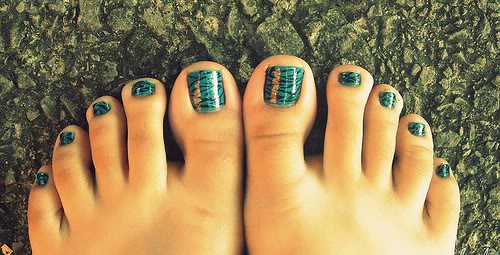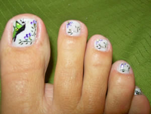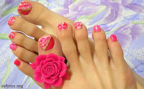 As unhas dos pés são mais difíceis de ser pintadas ainda mais decoradas, mas, as mulheres se arriscam e decoram as suas unhas dos pés com os mais variados desenhos, nos quais os que mais se destacam são as flores, desenhos animados e linhas coloridas.