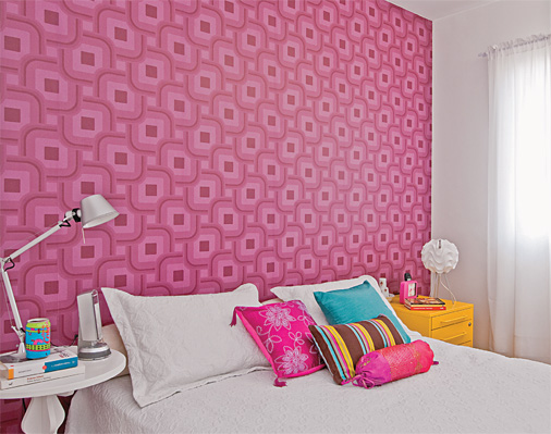 - Quartos – A escolha do papel de parede do quarto vai muito de acordo com a idade e sexo do morador, sendo assim para quartos de crianças é indicado usar papel de parede claro com motivos infantis, para quartos de jovens o papel de parede liso é o mais usado e para quarto de casal o papel de parede pode ser estampado, pois as estampas deixam o ambiente mais charmoso e bonito, sendo que os mais vistos são os listrados e florais.