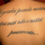 São muitas as tatuagens que estão em alta, mais um destaque especial é dado as com frases que são super expressivas e que já caíram no gosto das pessoas anônimas e famosas e tem várias frases criativas espalhadas por partes diferentes do corpo como costas, pernas, braços e outras que oferecem espaço suficiente para esse tipo de tatuagem.