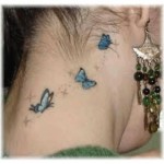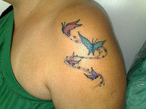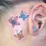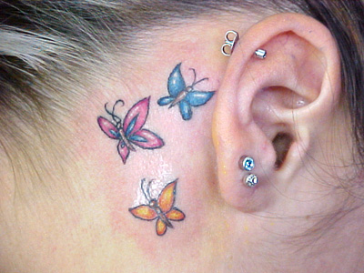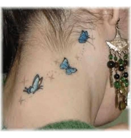 As tatuagens de borboletas femininas são vistas em diferentes partes do corpo das mulheres, nas quais as mais comuns são: pescoço, braços, pés, barriga, nuca e atrás da orelha, geralmente os desenhos são muito coloridos e pequenos. As cores principais das tatuagens de borboletas, são: azul, verde, vermelho, laranja e lilás.