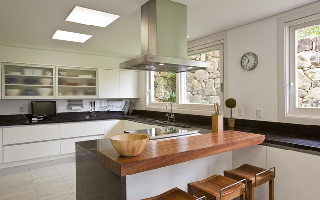 Hoje as bancadas para cozinha americana são complementadas por bancos ou banquetas com altura média ou alta, pois uma cadeira comum é muito baixa para uma bancada.