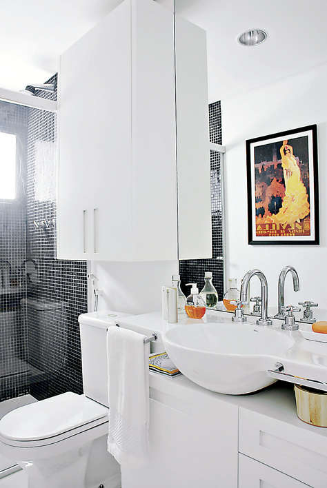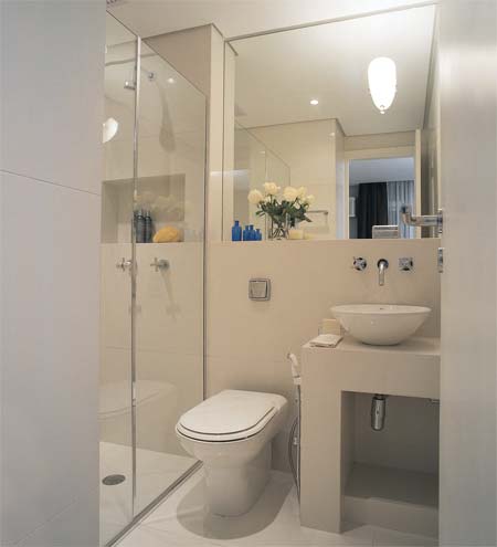 Para decorar banheiros pequenos é necessário seguir algumas dicas, como: Pinte o banheiro com uma cor clara de preferência branco; Ponha um espelho grande que dá a impressão de amplitude do ambiente; Coloque armários pregados na parede e também em baixo assim terá muito espaço para colocar as coisas; Procure revestir o piso do banheiro com cerâmica ou porcelanato que podem ser nas cores: branco, bege, salmão, azul, preto e outras; Nas paredes ponha um revestimento com pastilhas coloridas que está sendo muito usado; Para finalizar ponha uma iluminação branca para deixar o banheiro claro e aconchegante.