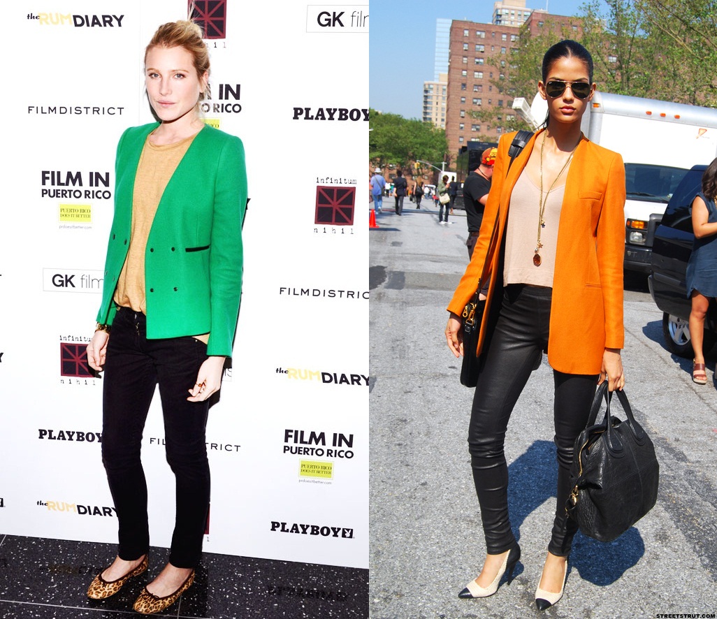 Os blazers quando usados com as mangas dobradas dão mais charme a peça, principalmente se o tecido interno for de uma estampa ou cor diferente.