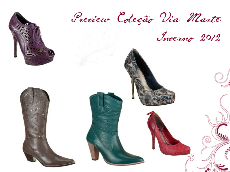 A Via Marte é uma marca de calçados que faz muito sucesso no Brasil há vários anos, isso porque, ela sempre está trazendo calçados de diferentes modelos que são capazes de deixar as mulheres das mais diversas idades enlouquecidas, e como não podia ser diferente a Via Marte está lançando a sua coleção inverno 2012.