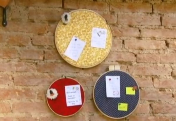 Mural artesanal – Uma peça dessa pode ser comprada, ou até ser feita em casa, o material de sua confecção pode ser EVA, cortiça, isopor, tecido e outros, os recados devem ser fixados com tachinhas, perfeitos para usar em escolas e faculdades;