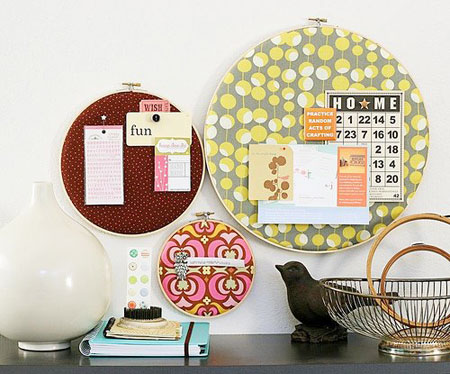 Mural de madeira – Esse tipo de mural é muito simples de ser feito, basta comprar um pedaço de madeira oval, quadrado ou retangular, cobri-lo com um tipo de papel grosso e colocar os recados com alfinetes ou até com cola, esse é indicado para se usar em casa.