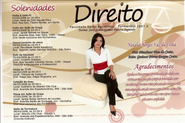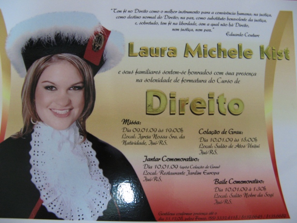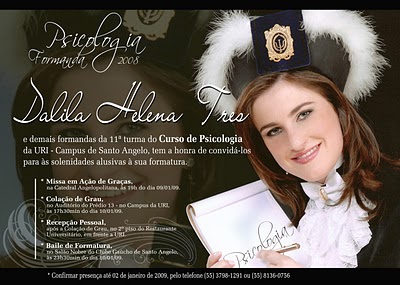 Portanto se vai se formar nesse ano de 2012 e quer que todas as pessoas que você ama estejam presentes na hora que receber seu diploma, então vá logo procurando o modelo e estilo de convite para formatura que mais combine com você e muita boa sorte nesse dia tão especial.