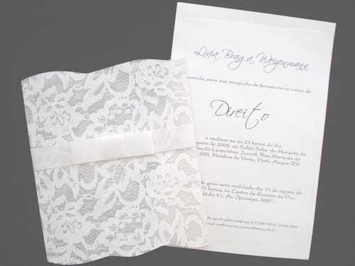 Esses convites são mais simples e mais baratos, claro que tem aqueles formandos nos quais as famílias não abrem mão de fazer um convite tradicional, que seriam aqueles feitos em um papel vegetal ou cartão escrito a mão com letras super bonitas, podendo ser nas cores preta, branca ou dourado e para completar um envelope que pode ser azul, vermelho, branco, rosa, lilás e outras cores, com detalhes de laços e flores ou então simples sem nenhum adorno.