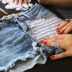 13. 5 – Na seqüência pegue a agulha alfinete vá desfiando o short desfazendo a trama da barra do jeans.