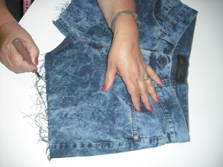 13. 5 – Na seqüência pegue a agulha alfinete vá desfiando o short desfazendo a trama da barra do jeans.