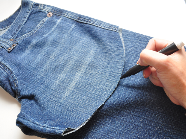 9. 1 – Primeiro vista a calça e marque na lateral o comprimento do short.
