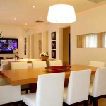 A sala de jantar é um ambiente usado para as refeições, por isso ele precisa ser limpo e bem organizado, os móveis que não podem faltar na decoração de uma sala de jantar são: uma mesa e cadeiras na quantidade certa para a família. A iluminação deve ser branca e transmitida através de um lustre ou uma luminária, ou até por pequenos pontos de luz no teto. Outro ítem muito importante em uma decoração de sala de jantar é a cor que deve ser sóbria ao mesmo tempo não pode ser apagada, as mais indicadas são: branco, bege, marrom e cinza, se quiser inovar pode pintar uma das paredes com uma cor viva ou então revesti-la com um material diferente sendo que a madeira é a mais vista.