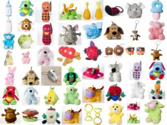 Os brinquedos para animais podem ser diversas coisas, como: ossos, bonecos, ursos, jogos e outros que devem ser feitos com materiais resistentes e que não provoquem alergias nos animais. Não esquecendo que existe também a opção de cores dependendo do sexo do animal, ou seja, rosa, amarelo e lilás para as “meninas” e azul, verde e vermelho para os “meninos”.
