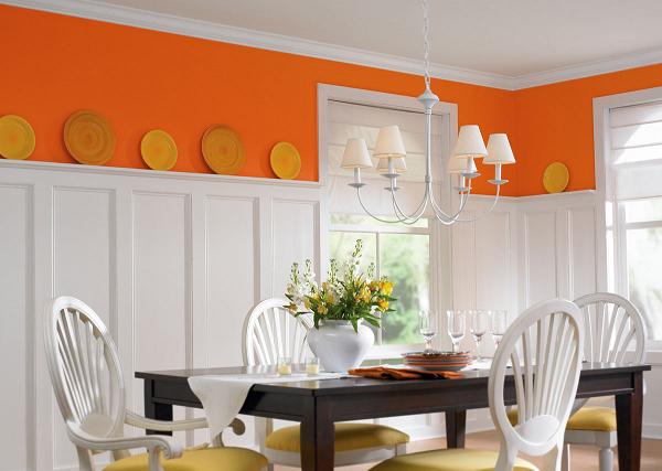 Cozinha – A cozinha é um ambiente que precisa transparecer limpeza e alegria, por isso, ela deve ser pintada de branco e ter detalhes nas cores: amarelo, laranja e vermelho.