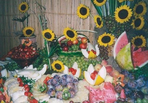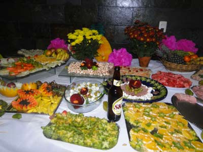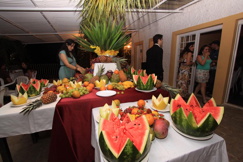 Entre os alimentos e bebidas indicados para uma festa havaiana podemos destacar: palitinhos com frutas, frios, saladas, patês, pães, variados drinks de frutas e muito mais.