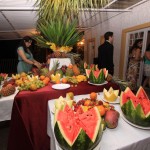 Na decoração de uma festa havaiana é necessário ter uma mesa cheia de frutas e sucos, nela a toalha estampada é essencial, para as pessoas que quiserem adicionar alimentos variados em sua festa, precisam colocar outra mesa separada para não confundir os convidados.
