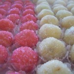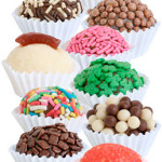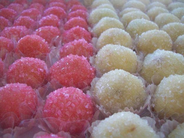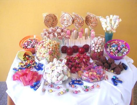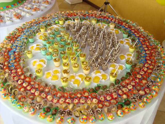 Geralmente esses doces ficam expostos nas festas infantis na mesma mesa dos salgadinhos e do bolo, mas para deixar essa mesa mais bonita e alegre a dica é embrulhar os doces com plásticos coloridos, ou papéis de cores diferentes que deixam os doces além de gostosos, muito bonitos e alegres.