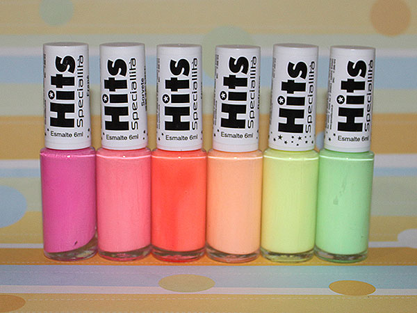 Os esmaltes Hits Speciallità moda 2013 estão trazendo uma nova coleção chamada Premium Hits Speciallità Pop Up verão 2013 que está muito linda e é formada por nove esmaltes com cores lindíssimas, divididas em tonalidades nobres, elegantes, joviais e divertidas, são elas: Gold Digger (dourado), Flamingo Style (salmão), Caribbean Sea (azul turquesa), Pineapple Pie (amarelo claro), Aluminum (prata), Rose Gold (rosa nude metalizado), Ruby Tuesday (vinho), Candy Pink (rosa claro) e Brown Sugar (marrom metalizado).