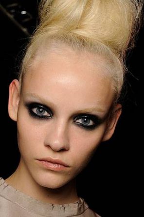Comece a maquiagem limpando a pele e aplicando um primer para fazer a maquiagem durar mais, em seguida passe a base no rosto e no pescoço e o corretivo onde achar necessário, logo após passe o delineador ou lápis preto no contorno dos olhos e das pálpebras, depois com a ajuda de um pincel esfumace as pálpebras com o lápis, agora aplique a sombra deixando-a mais carregada nos cantos dos olhos e com um pincel esfumace ela, é indicado que use sombra com glitter, em seguida aplique o rimel e depois o pó e para finalizar passe um batom cor de boca ou apenas um gloss, já que, o destaque dessa maquiagem fica por conta dos olhos.