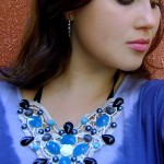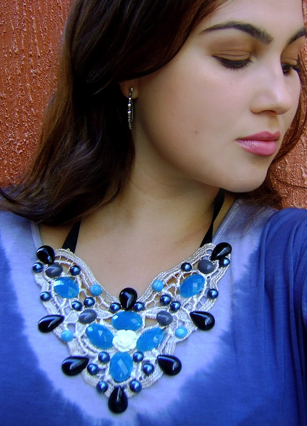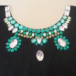 Os maxicolares são feitos de tecido e pedrarias, eles são grandes e bem chamativos, combinam com várias ocasiões e são ideais para ser usados com blusas lisas, simples e com decote.