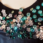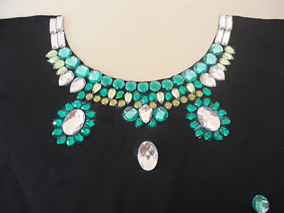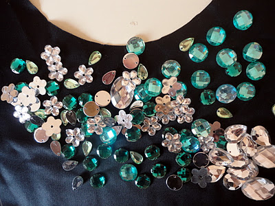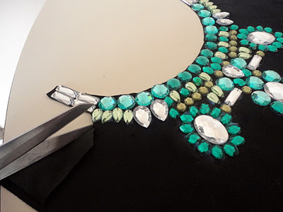 3° Coloque os chatons sobre o tecido na parte fosca, comece pela parte de cima e vá deixando do jeito que desejar ou como mostra a foto, para ficar perfeito pode marcar o centro.