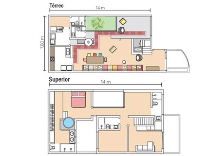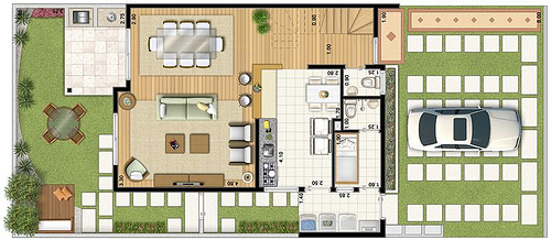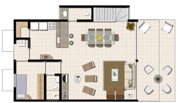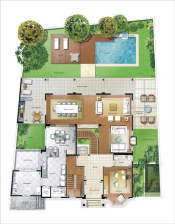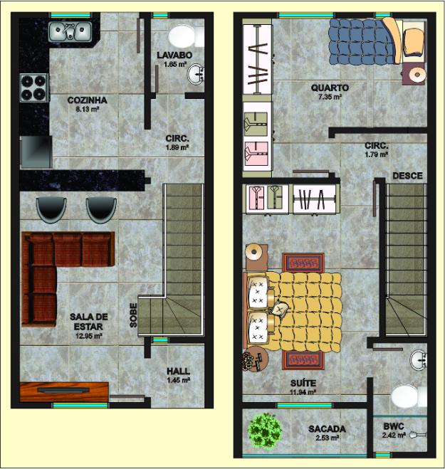As plantas de casas de sitio podem também trazer um segundo andar que costuma ser usado para os quartos e suítes. É importante dizer que essas plantas trazem casas grandes com os cômodos acima e ainda contam com lavanderia, depósito, lavabo e outros.