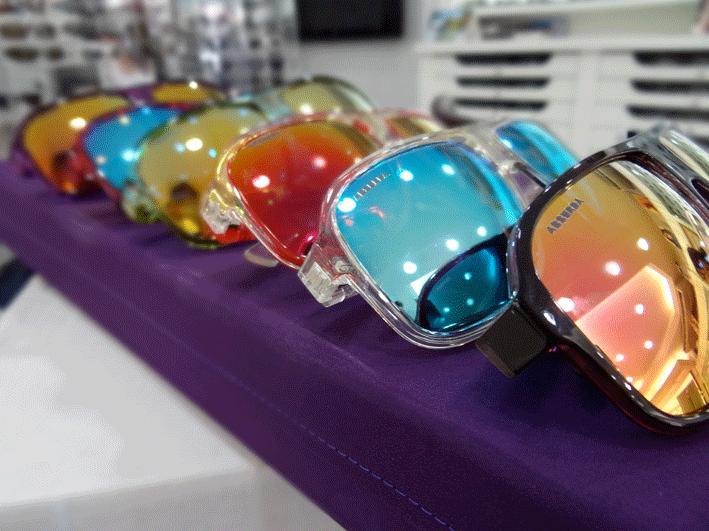 Os óculos Absurda Calixto podem ser encontrados com lentes e armações com as mais variadas cores, a principal característica dos óculos dessa marca são as lentes espelhadas que podem ter somente uma cor ou então duas, entre as cores mais vistas, estão: amarelo, rosa, prata, verde, azul, vermelho e lilás.