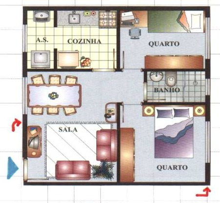 As plantas de casas pequenas e simples são as mais procuradas, porque podem ser encontradas em diferentes modelos, como: plantas com dois quartos, uma cozinha, um banheiro, uma sala e uma área de serviço; plantas com um quarto, sala, dois banheiros e garagem; plantas com três quartos, dois banheiros, sala, cozinha, área de serviço e garagem, entre outras.