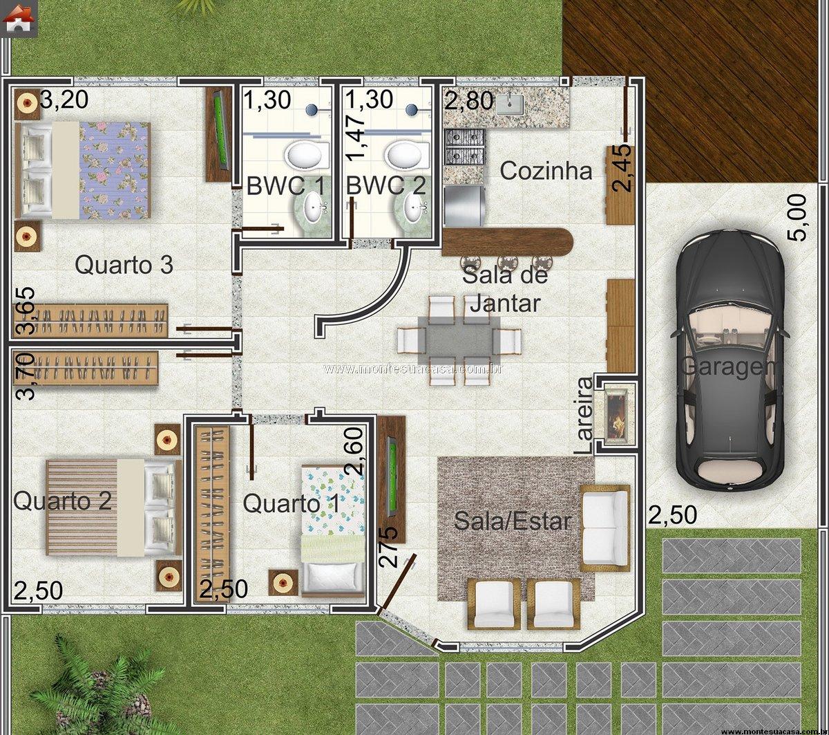 Projetos para Casas de 3 Quartos: Modelos, Detalhes