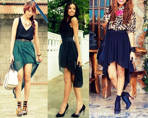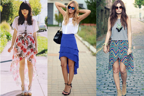 Um modelo de saia que está dando o que falar e fazendo parte do visual de muitas famosas é a saia assimétrica também conhecida como mullet que traz a parte da frente mais curta que a de traz, essa característica já faz muito sucesso nos vestidos e agora aparecem também nas saias.