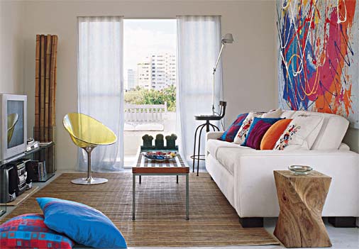 Nas salas coloridas decoradas o que não faltam são os acessórios de cores diferentes como tapetes, molduras de quadros, almofadas, cortinas, vasos de flores, entre outras coisas, sendo que além dos acessórios decorativos coloridos algumas solas trazem móveis com cores mais fortes como sofás, poltronas, pufes, mesas de centro e cadeiras, porém uma dica importante é se for apostar em uma mobília colorida use acessórios decorativos mais sóbrios ou se seus móveis forem de cores sóbrias pode usar sem medo acessórios mais coloridos, pois o importante é saber equilibrar.