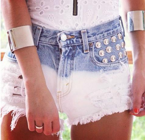A customização do short fica a critério da dona que pode: tingí-lo, aplicar os spikes e rebites, colar estampas, costurar a renda, fazer desenhos com a caneta e o molde, desfiá-lo, entre outras coisas.