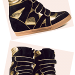 Os sneakers dourados trazem alguns modelos diferentes onde encontramos os de velcro, de cadarço, os todo dourados ou que apenas contam com detalhes dourados.