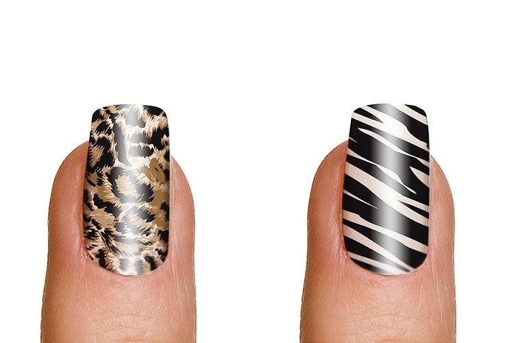 As tendências de unhas com estampa animal adesiva podem ser encontradas em diversos modelos, sendo que as mais procuradas, são: zebra, tigre, dálmata, girafa, leopardo e onça. Essas unhas podem ser combinadas com roupas mais sóbrias, mas se quiser chamar a atenção use roupas em cores fortes.